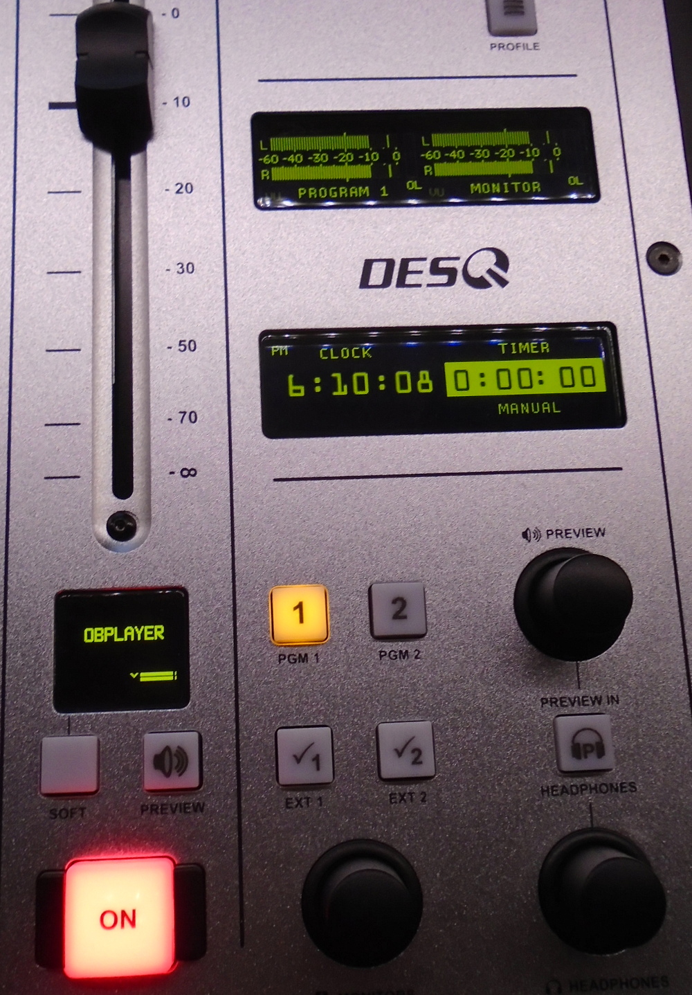 Six-fader, two-bus Axia DESQ console is a cost-effective, small-footprint console option perfect for small production studios, remote vehicles, content ingest stations, etc. DESQ has two stereo mixing buses and a Preview (cue) bus, six high-quality 100mm conductive-plastic faders for silky-smooth operation and long life, razor-sharp OLED channel options displays, an OLED meter display with switchable VU / PPM ballistics, and monitor / headphone controls for auditioning of Program buses or two assignable External monitor source selections. There’s also an OLED time-of-day clock + timer display, with auto / manual reset option. As with all Axia consoles, aircraft-quality switches feature all-LED lighting; the anodized work surface has rub- proof etched markings that can’t rub off. Additional features include automatic mix-minus for phone callers and codec sources, EQ for voice sources, and Show Profile instant recall of up to four pre-defined console “snapshots”.